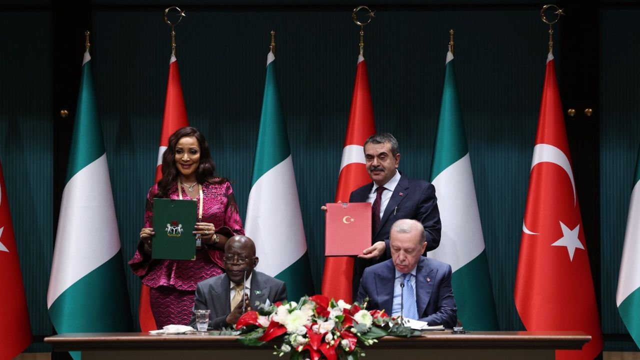 Cumhurbaşkanı Erdoğan ile Nijerya Cumhurbaşkanı Tinubu’nun Cumhurbaşkanlığı Külliyesinde gerçekleştirdiği baş başa ve heyetler arası görüşmelerin ardından iki ülke arasında çeşitli alanlarla anlaşmalar imzalandı.
